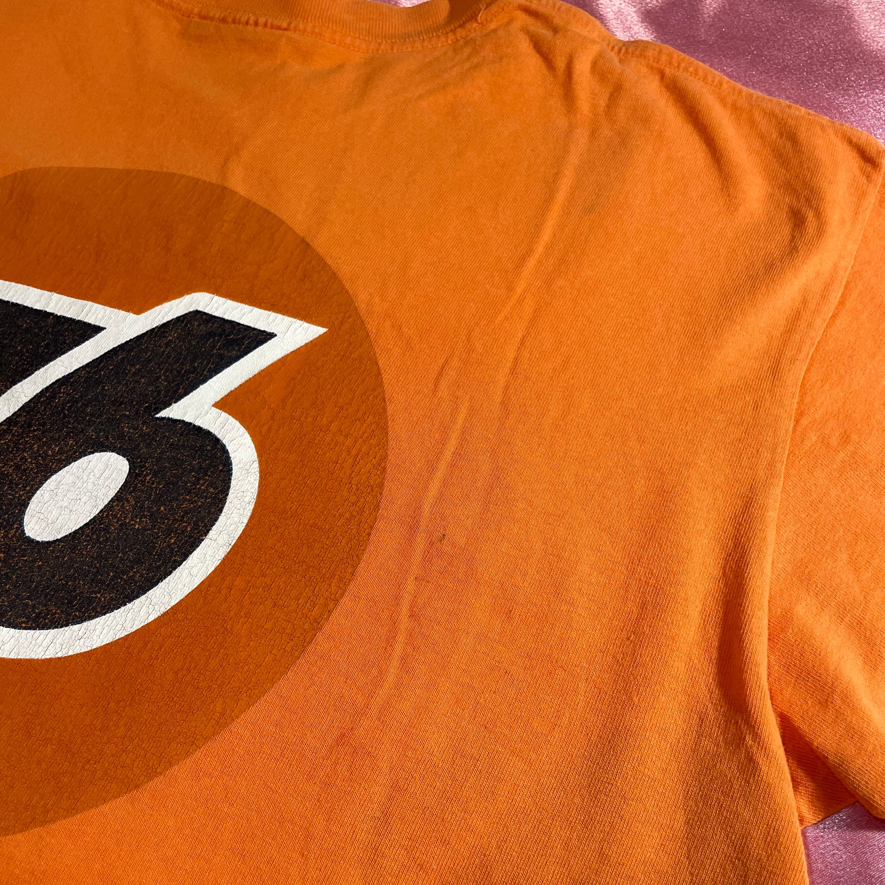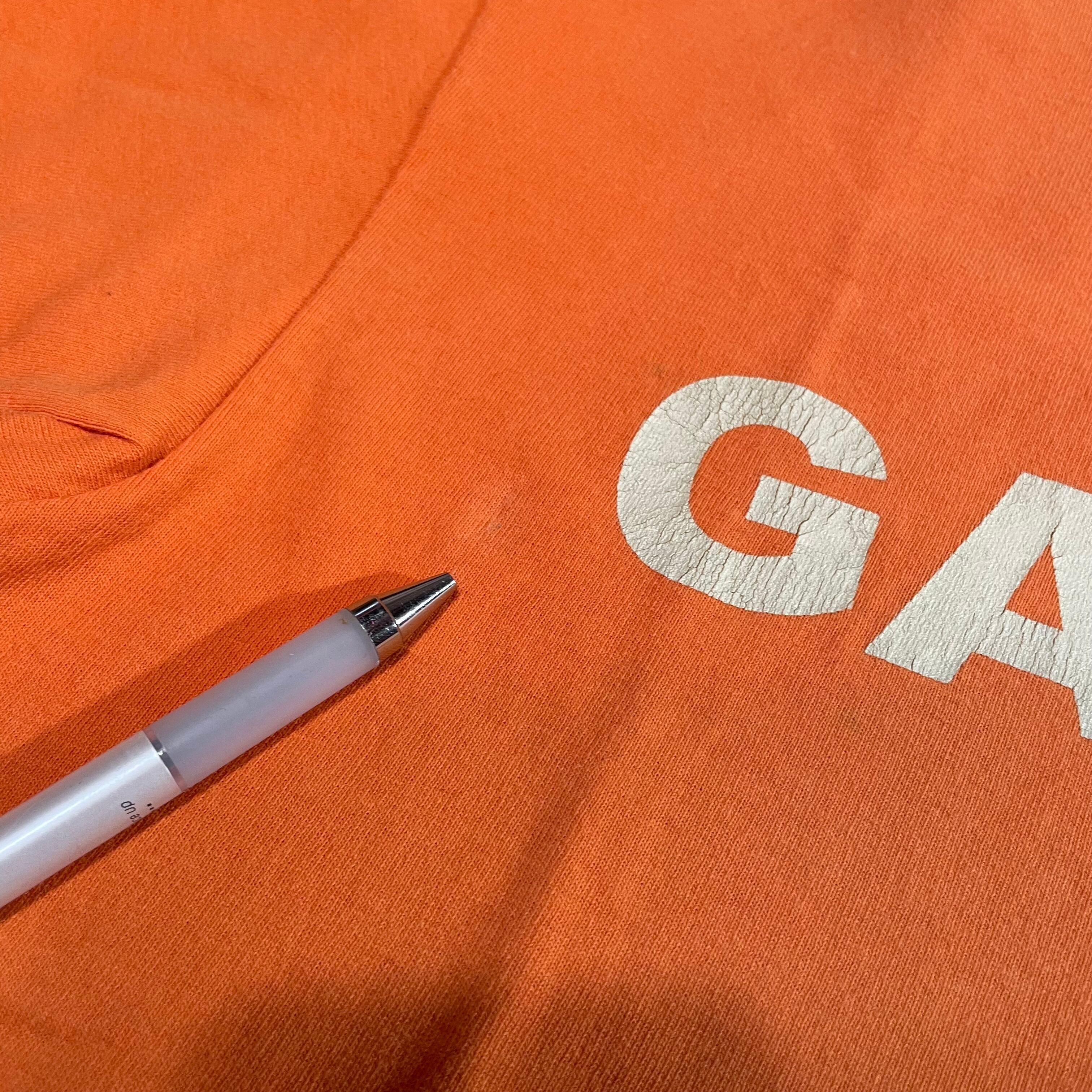 90'sと思われるUSA製LICENSED PRODUCTオレンジのボディに"GASOLINE"のフロントプリントと"76ボール"のバックプリント。