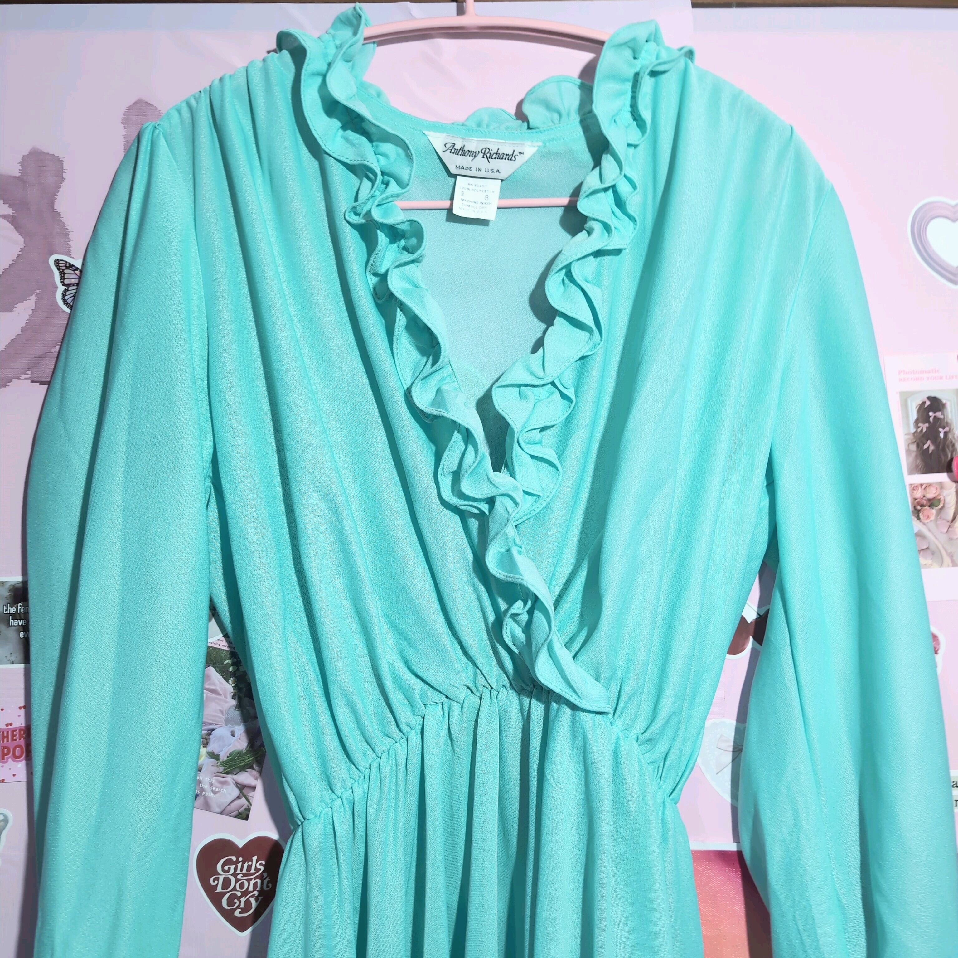 ブルーグリーンのフリルワンピース!