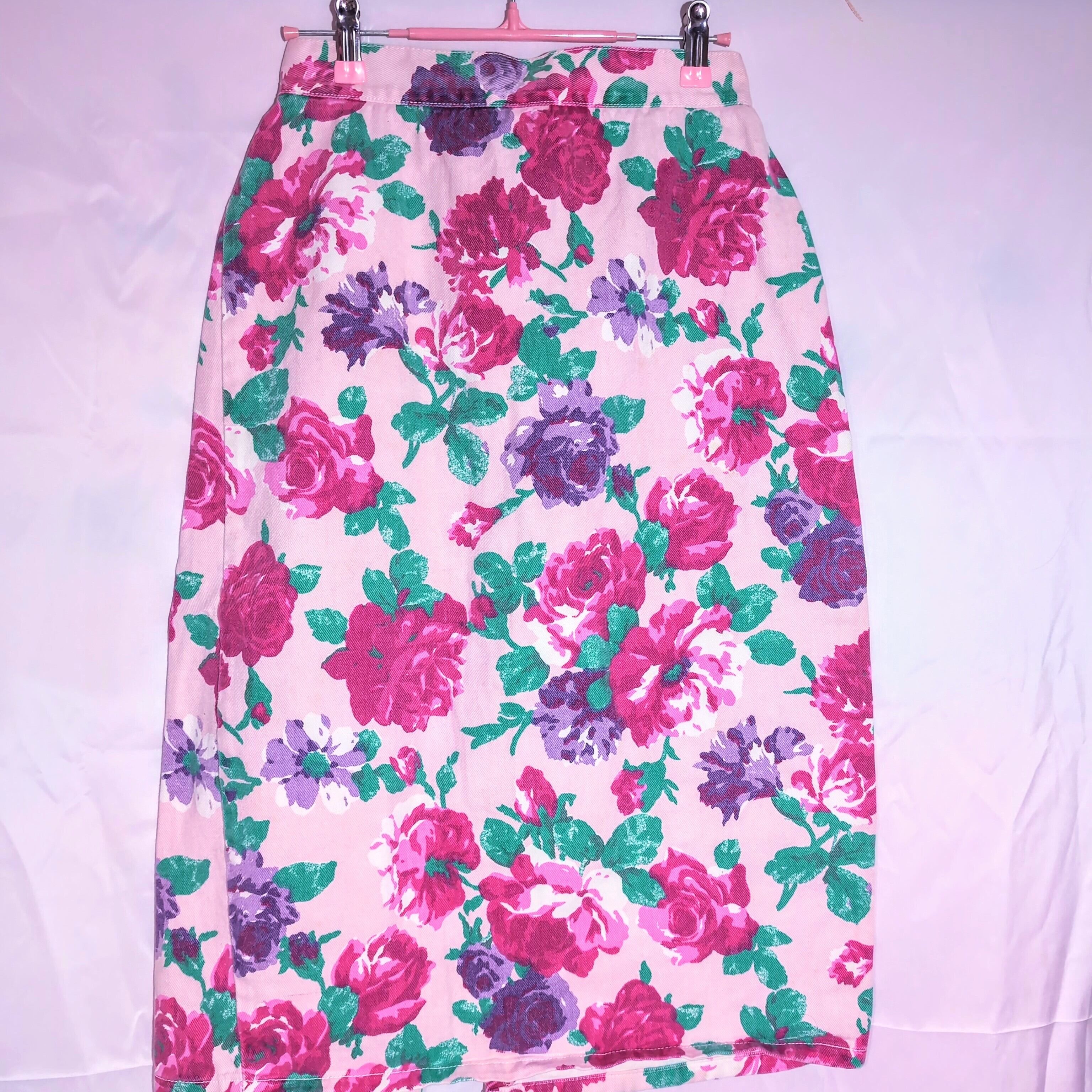 BONGO デニム生地スカート 花柄 80s-90s USA製
