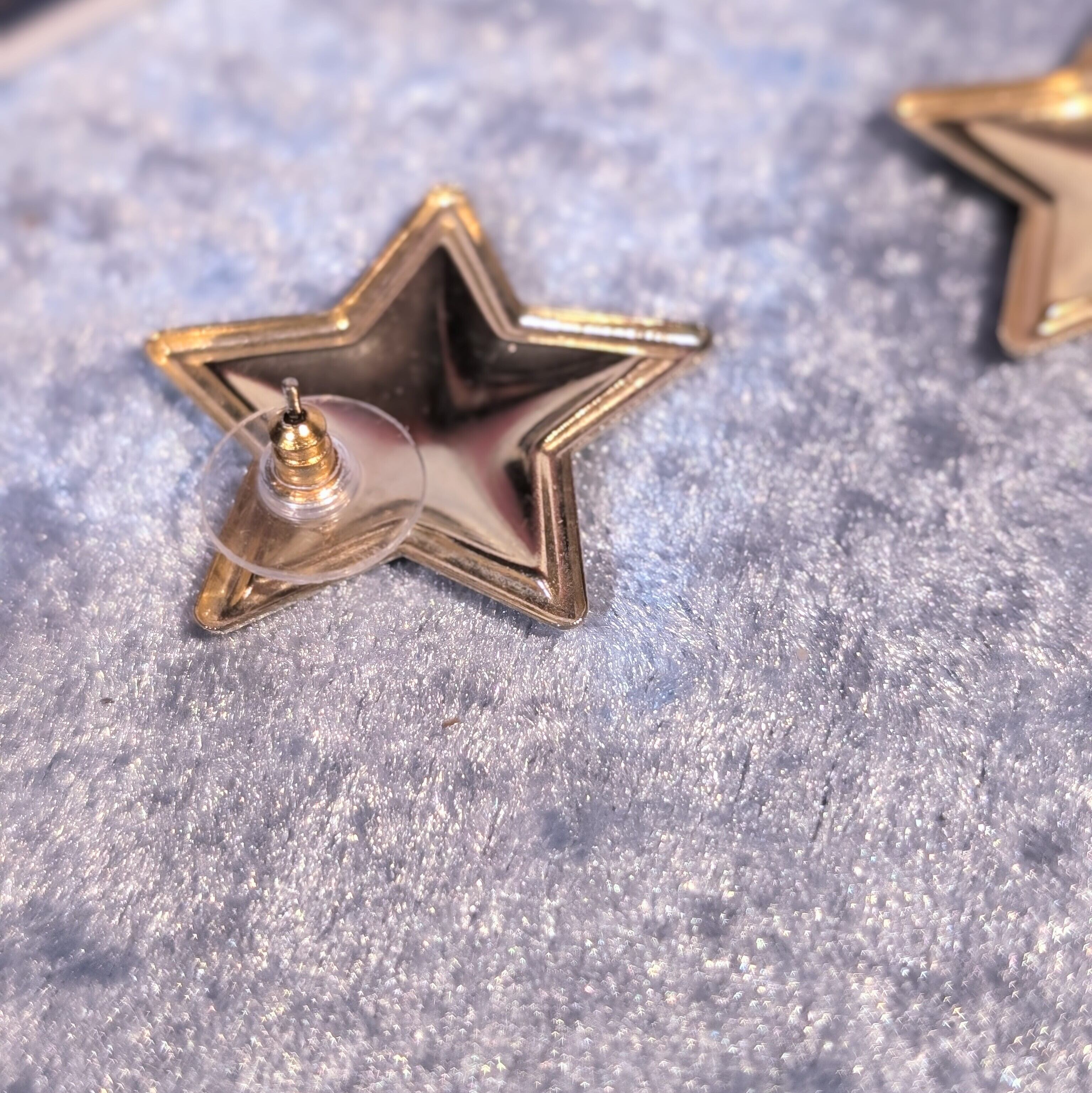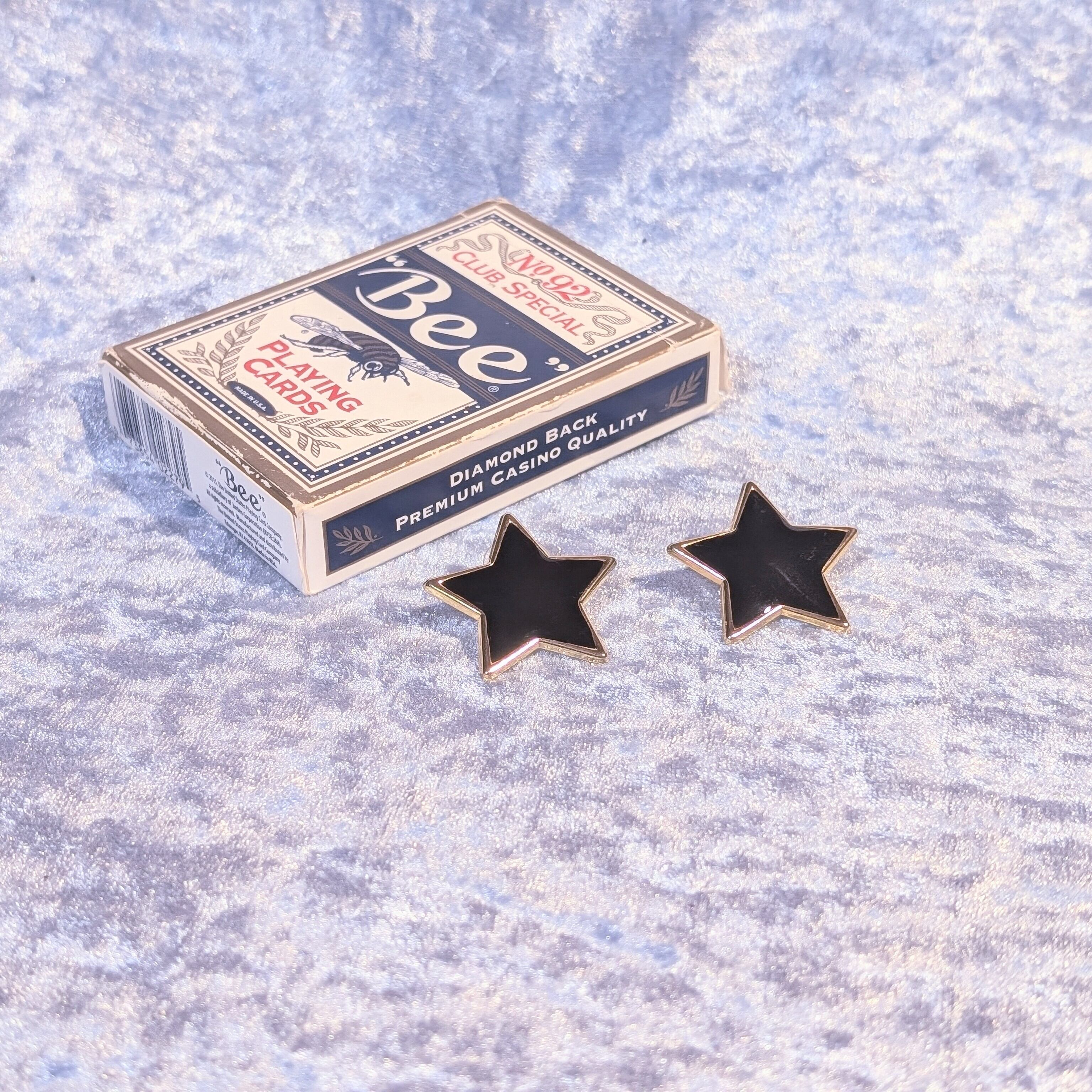 アンティークジュエリー 星型ブラック×ゴールド縁どりピアス