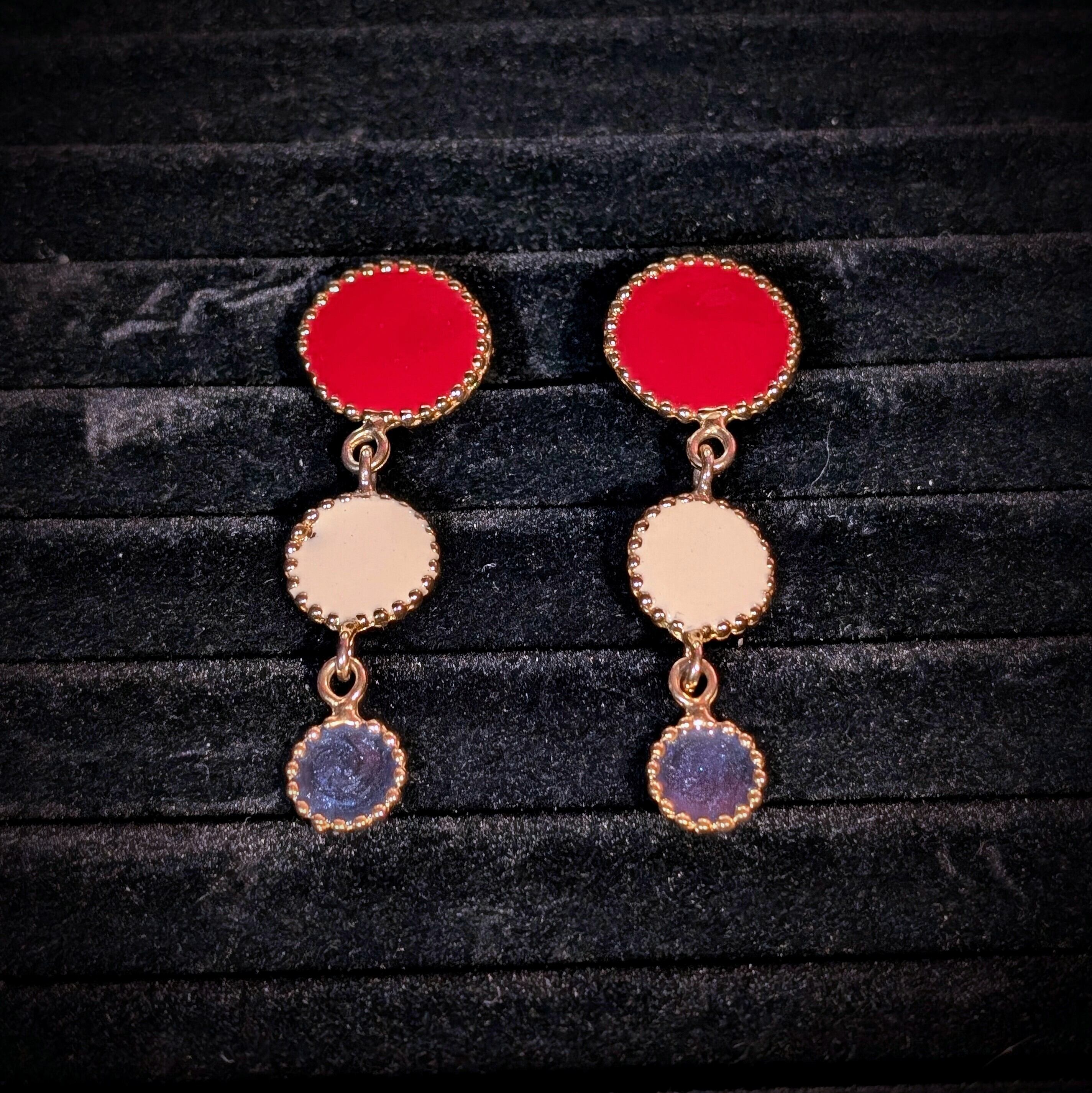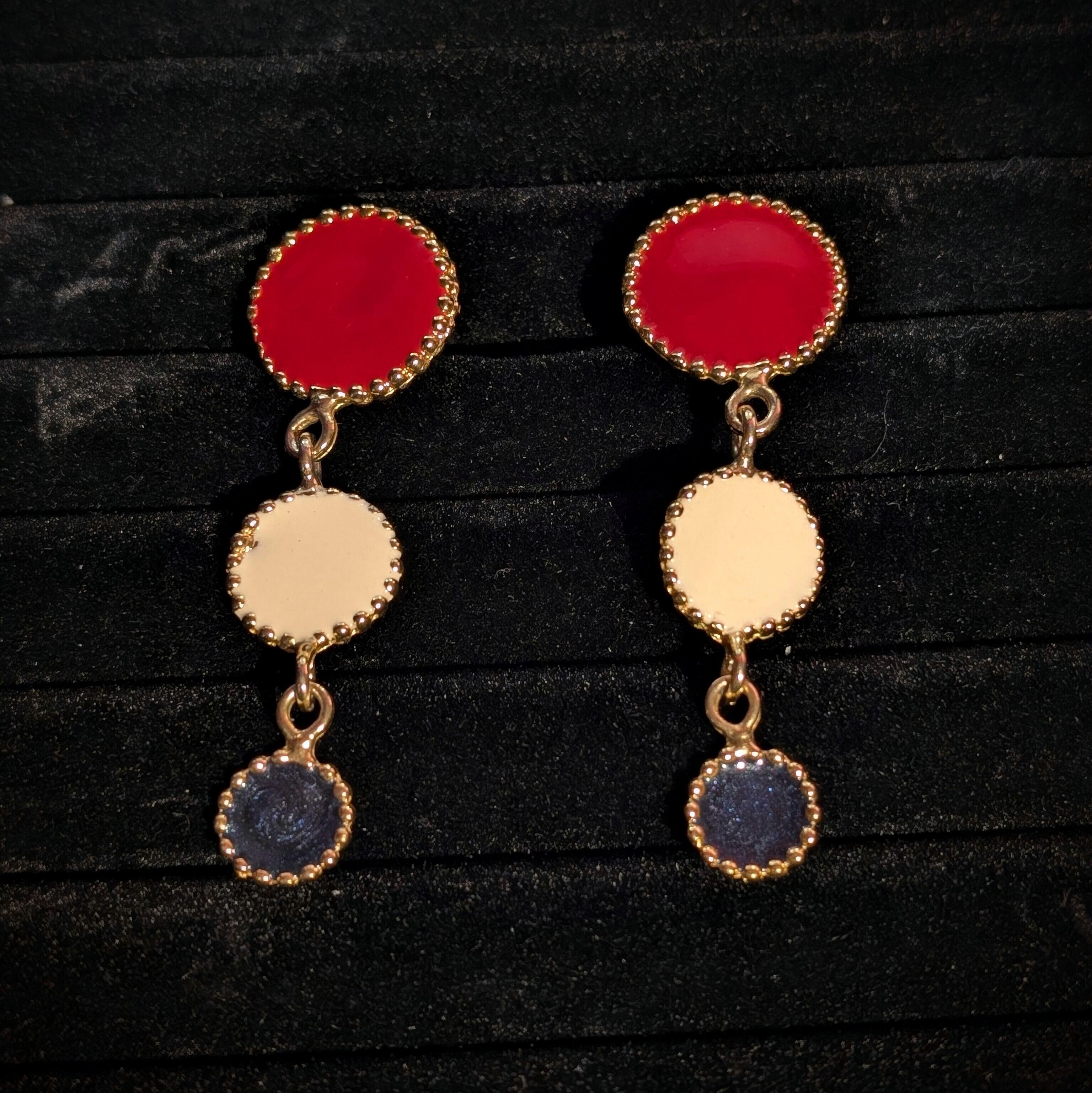 アンティークジュエリー レトロデザイン 赤/白/青ピアス
