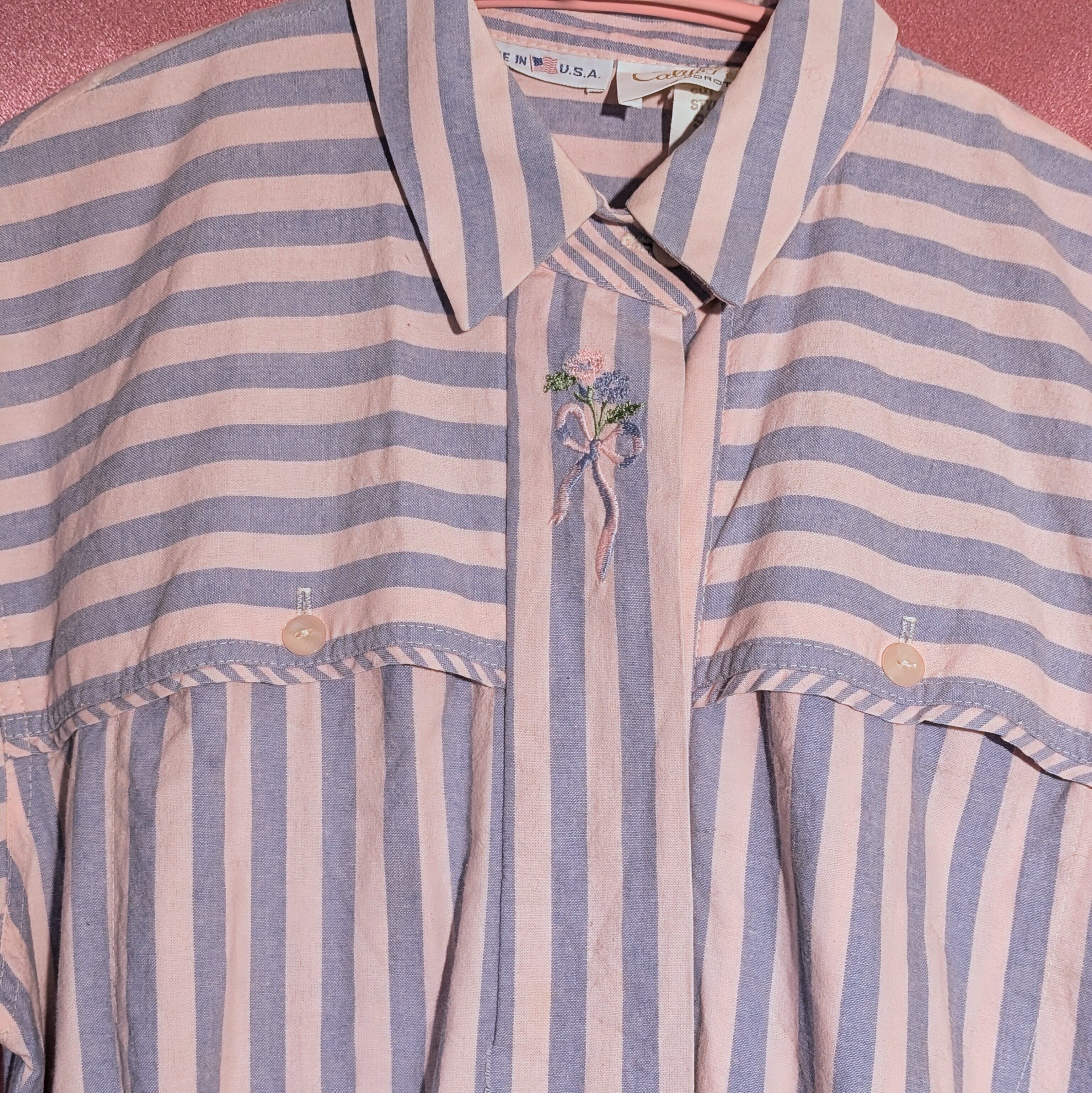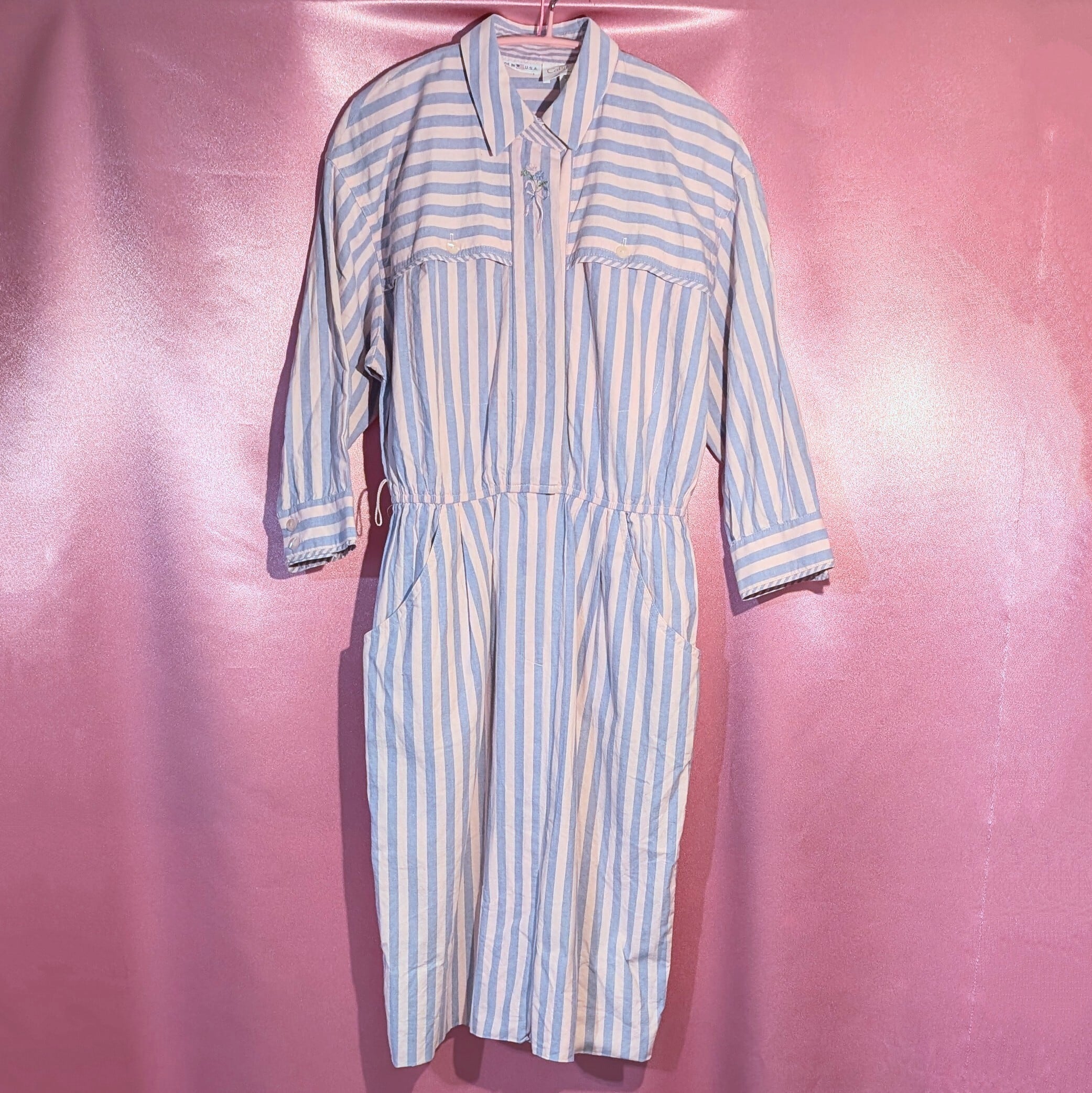 ピンクと水色のストライプがキュートなヴィンテージワンピース。