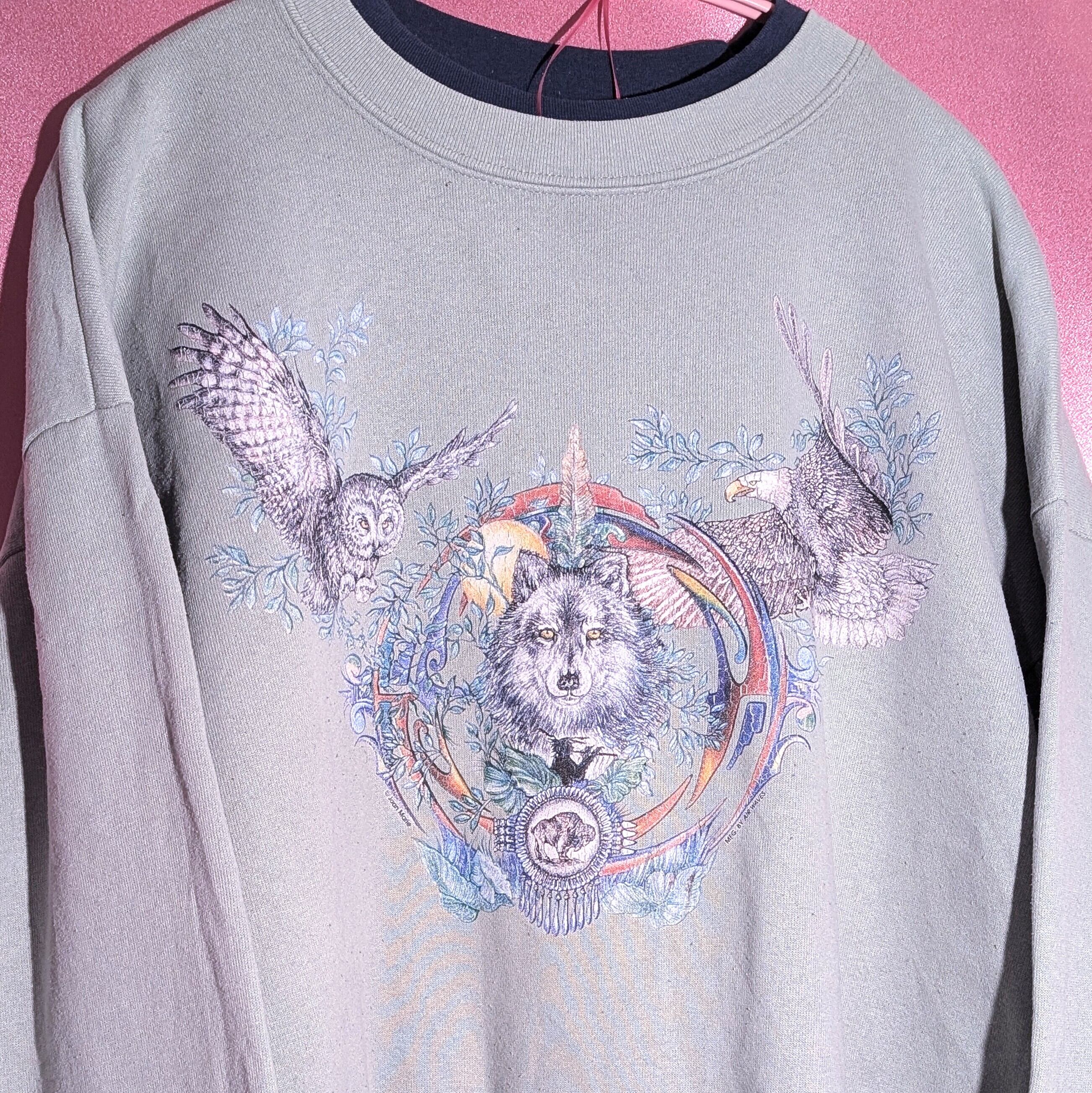 ユニークなアニマルプリントが特徴の、ダブルネックのスウェットです。