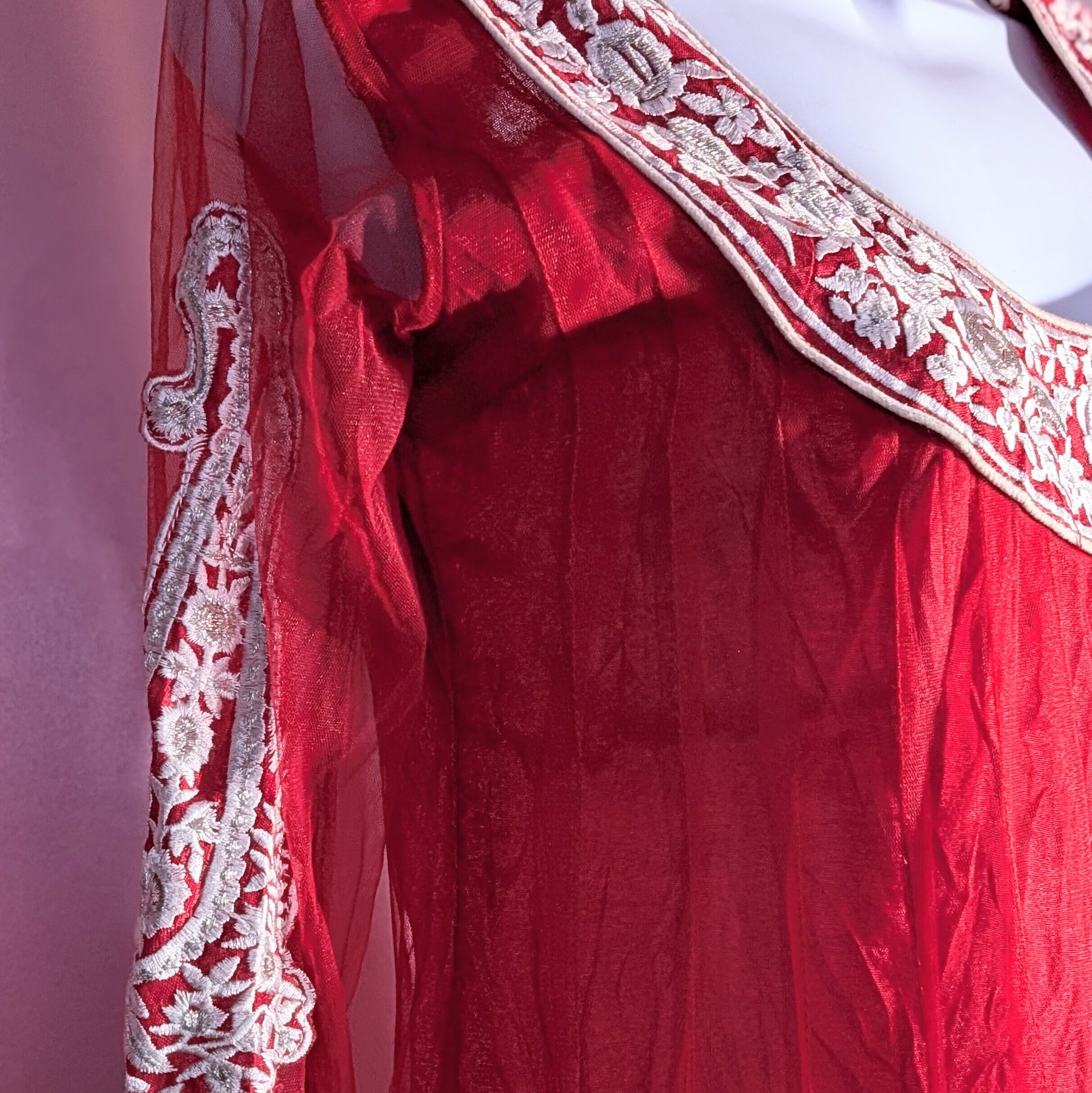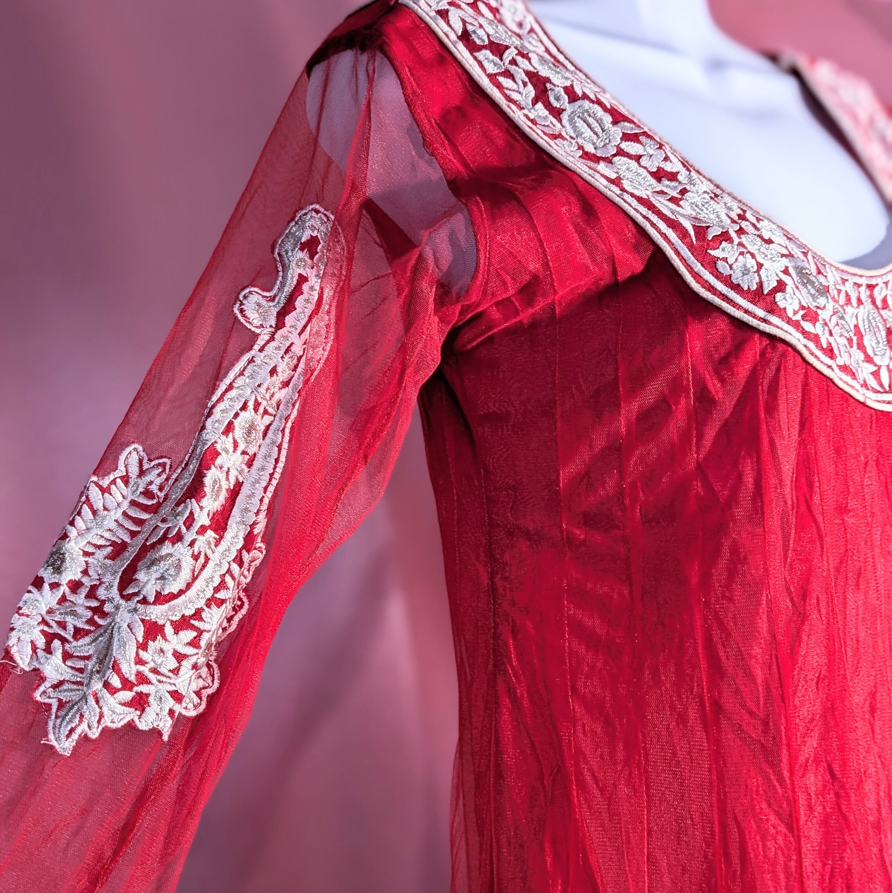 柔らかなシアー素材が肌に優しく、透け感がエレガントさを引き立てます。これでもかというくらいに華やかな刺繍レースがたっぷりと施されており、どんなシーンでも存在感を放つこと間違いなしです。