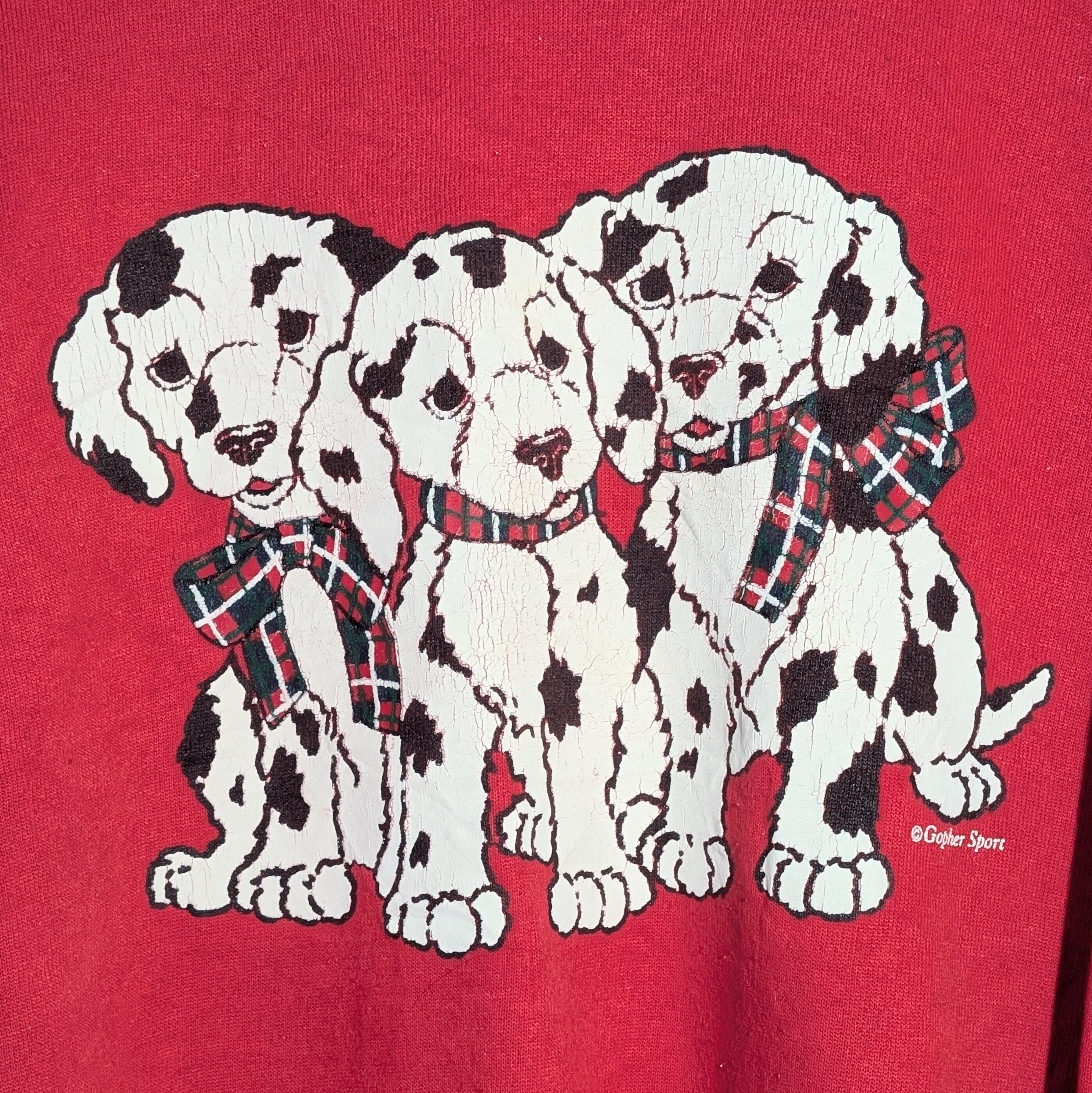 3匹のダルメシアンのイラストが可愛い!ダブルネックのスウェット。90sの風合いが魅力です。