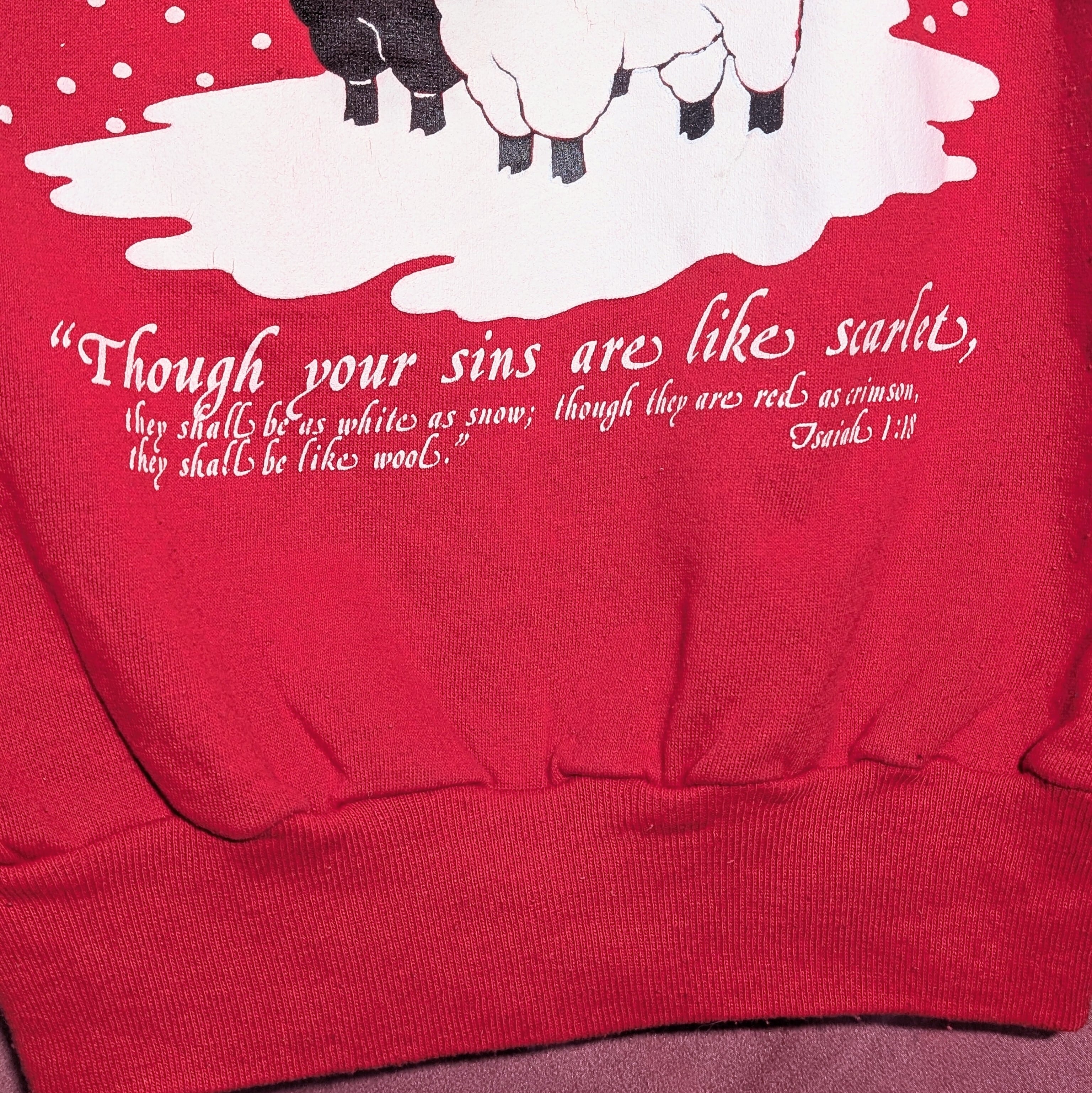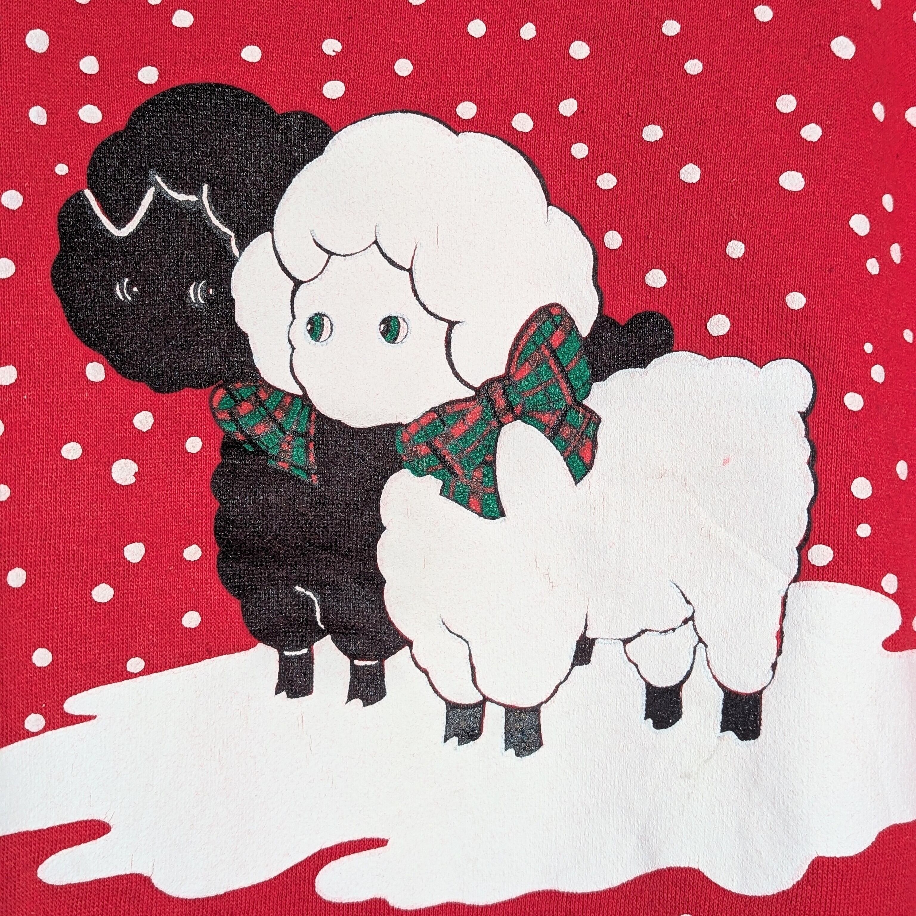 可愛らしい雪の中の羊さんがプリントされた、心温まるスウェットです!90sのレトロな雰囲気が魅力的で、冬の寒い時期をほっこりと彩ります。