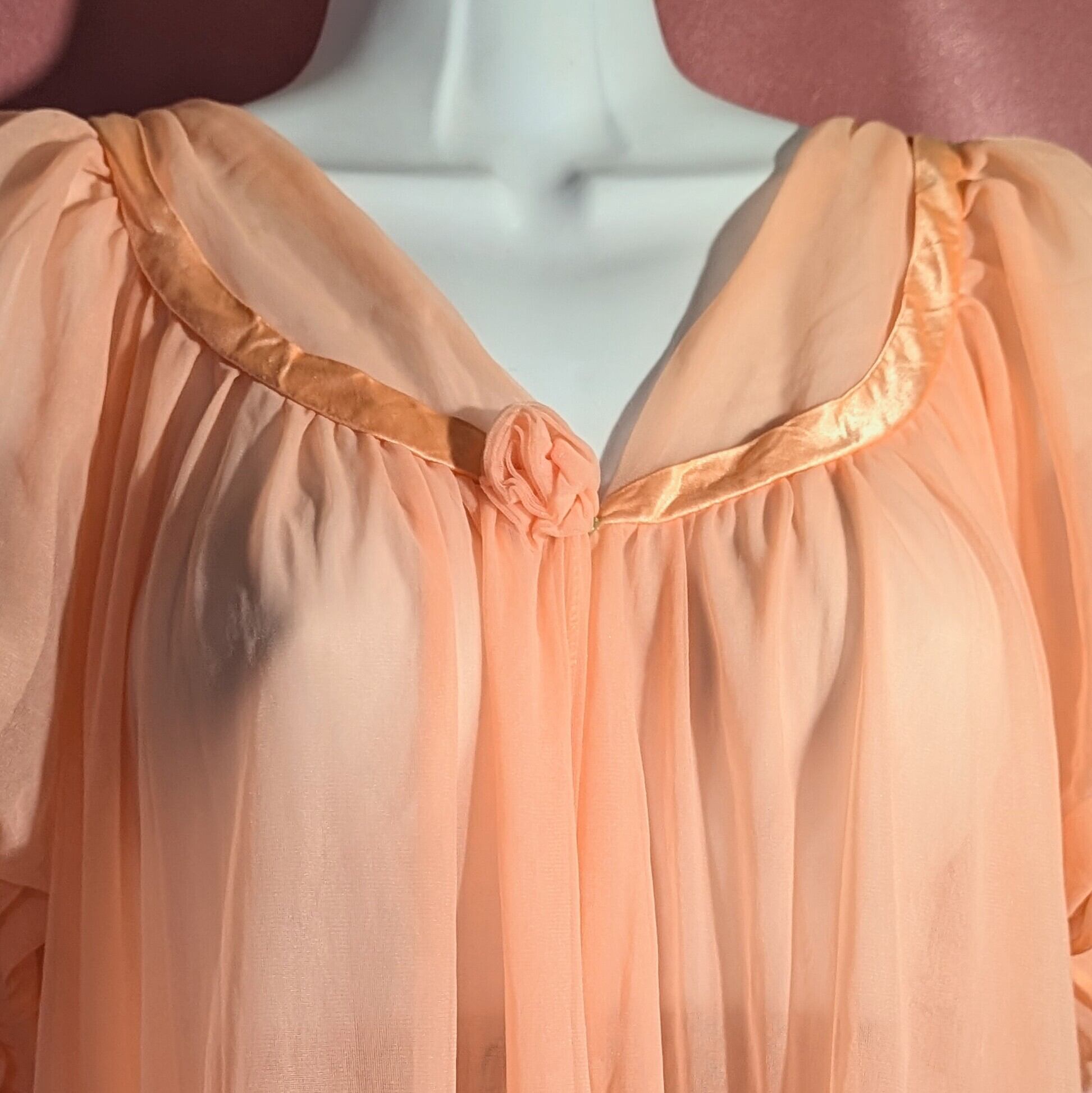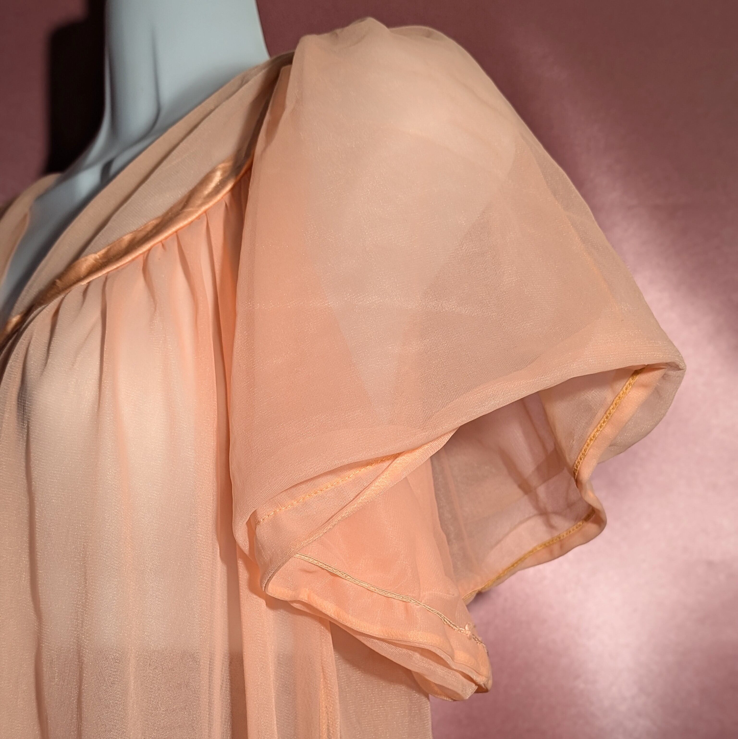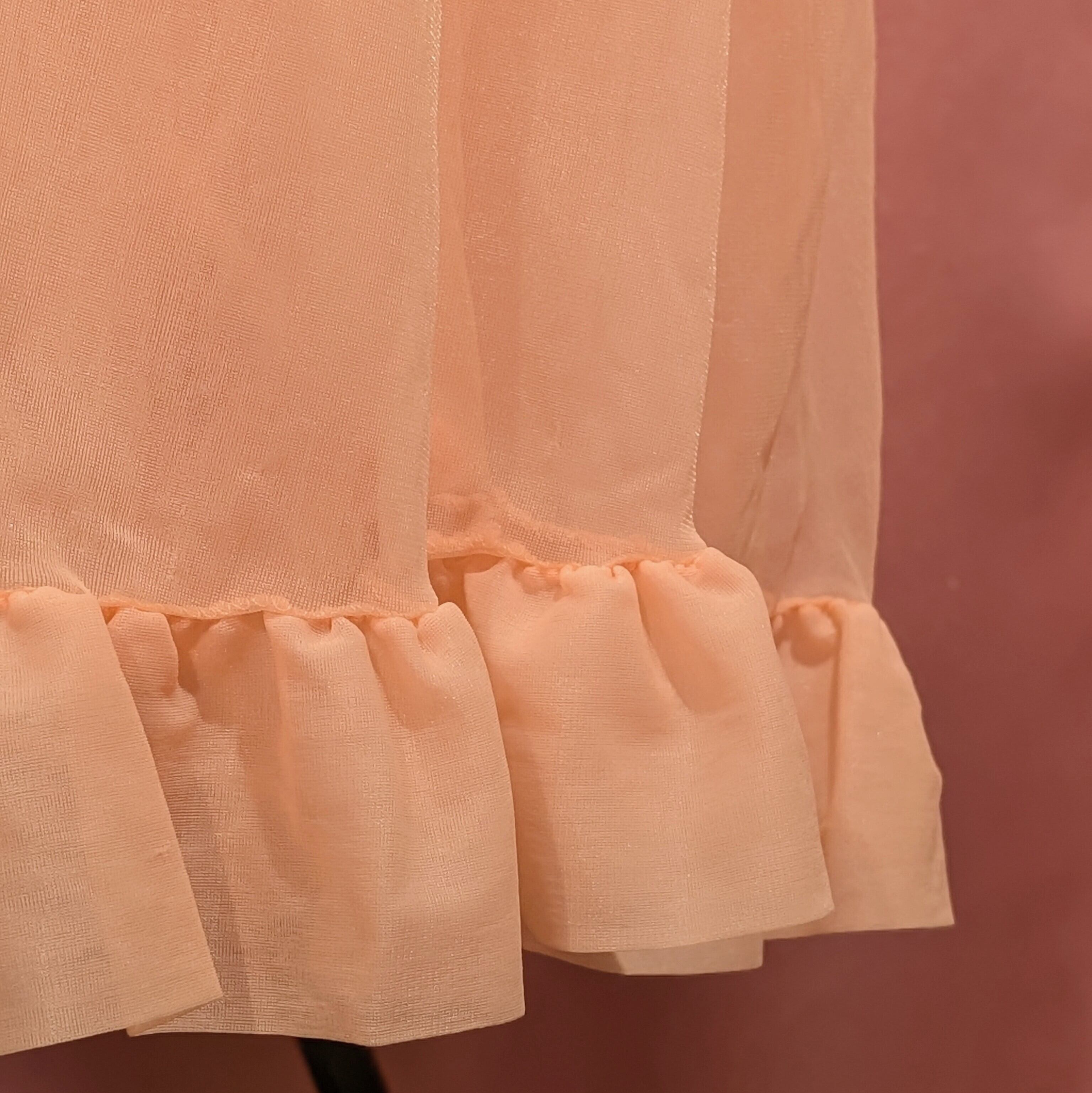 エレガントなサーモンピンクのナイトガウン。裾に向かってたっぷりの柔らかい生地が魅力です。