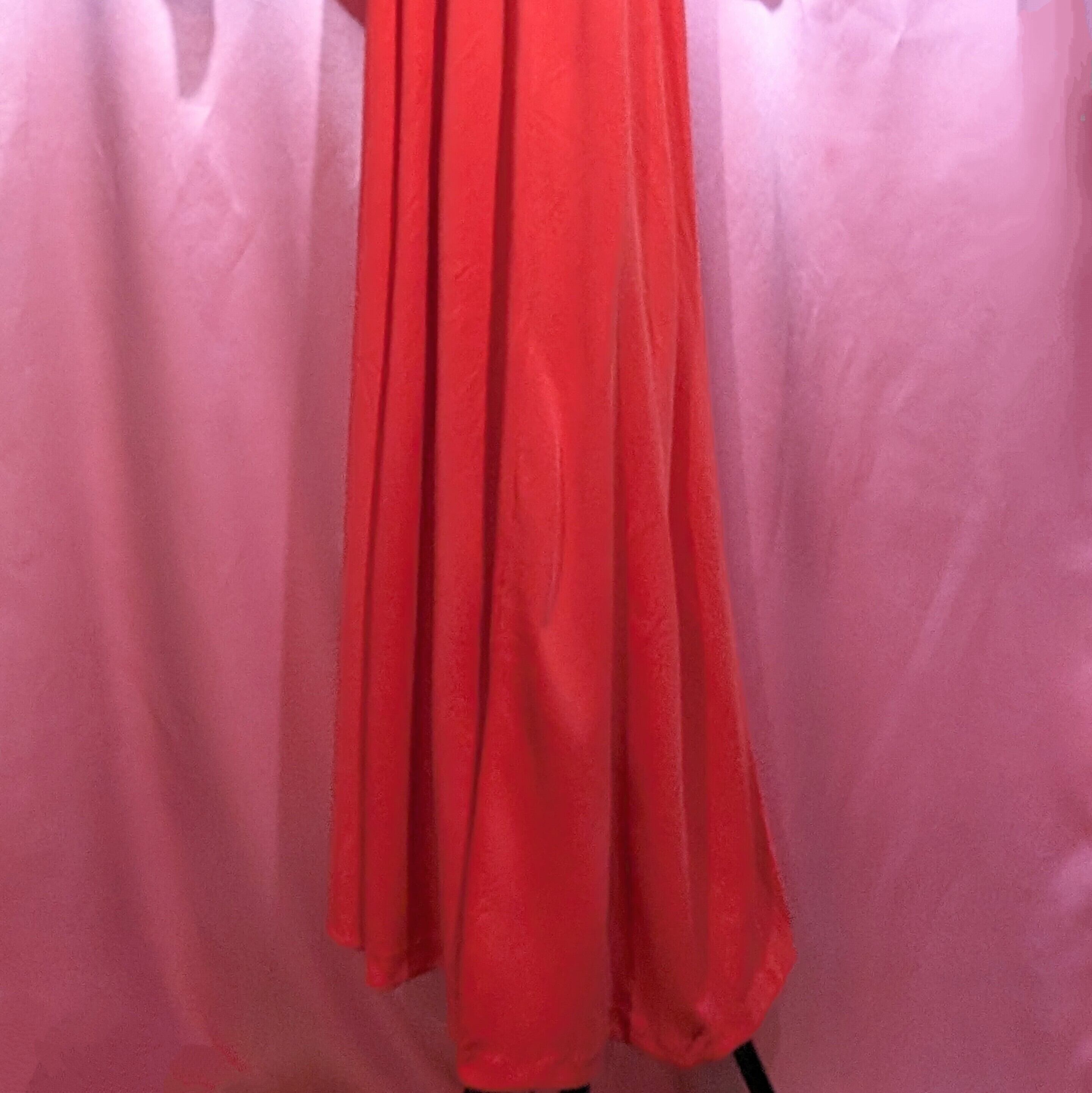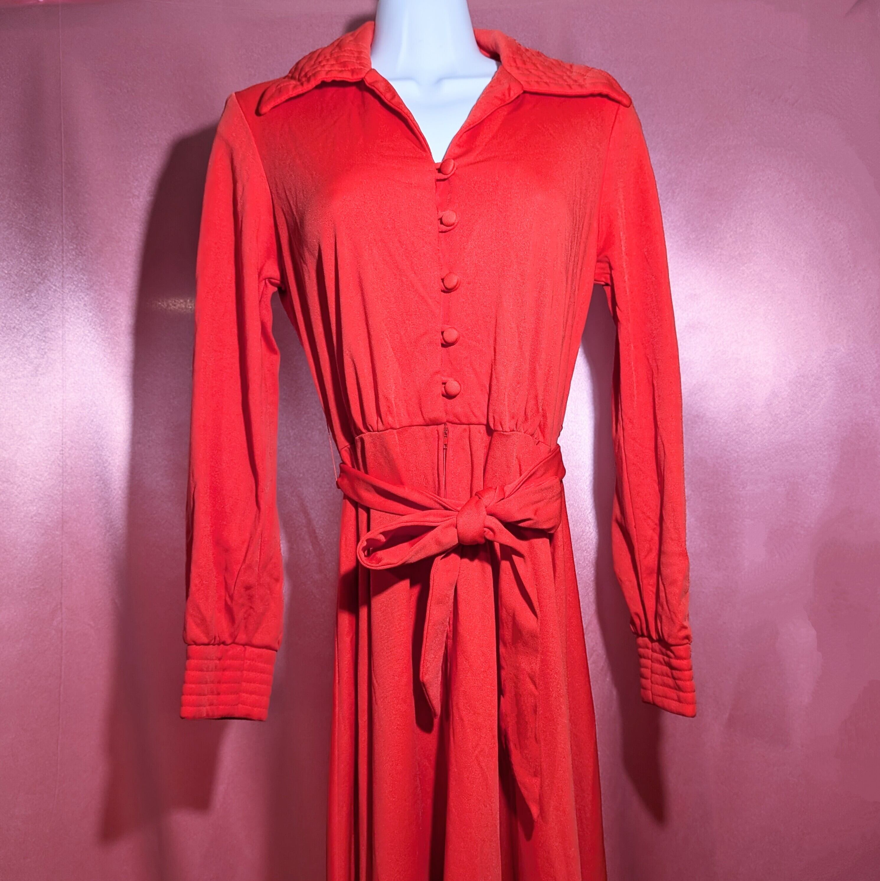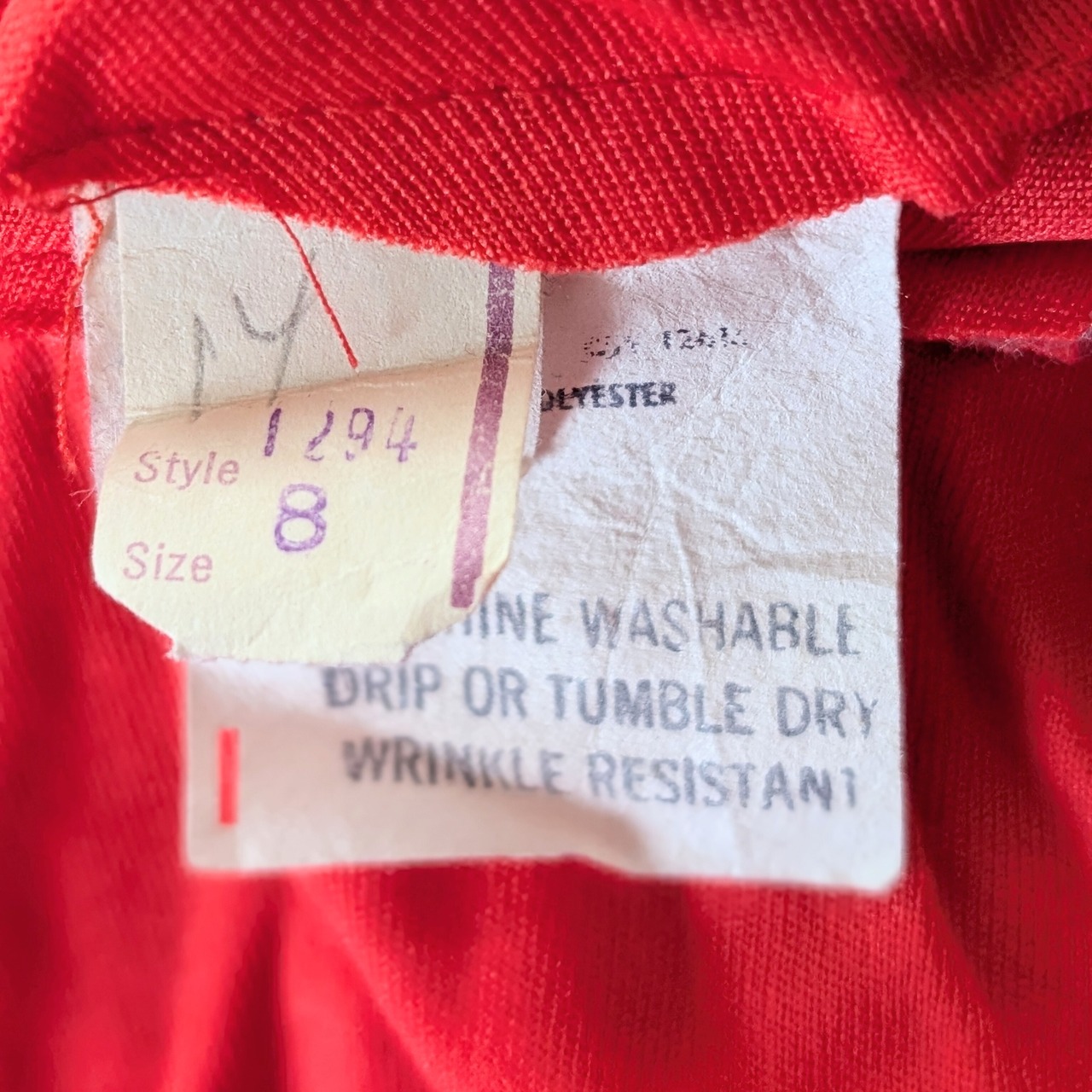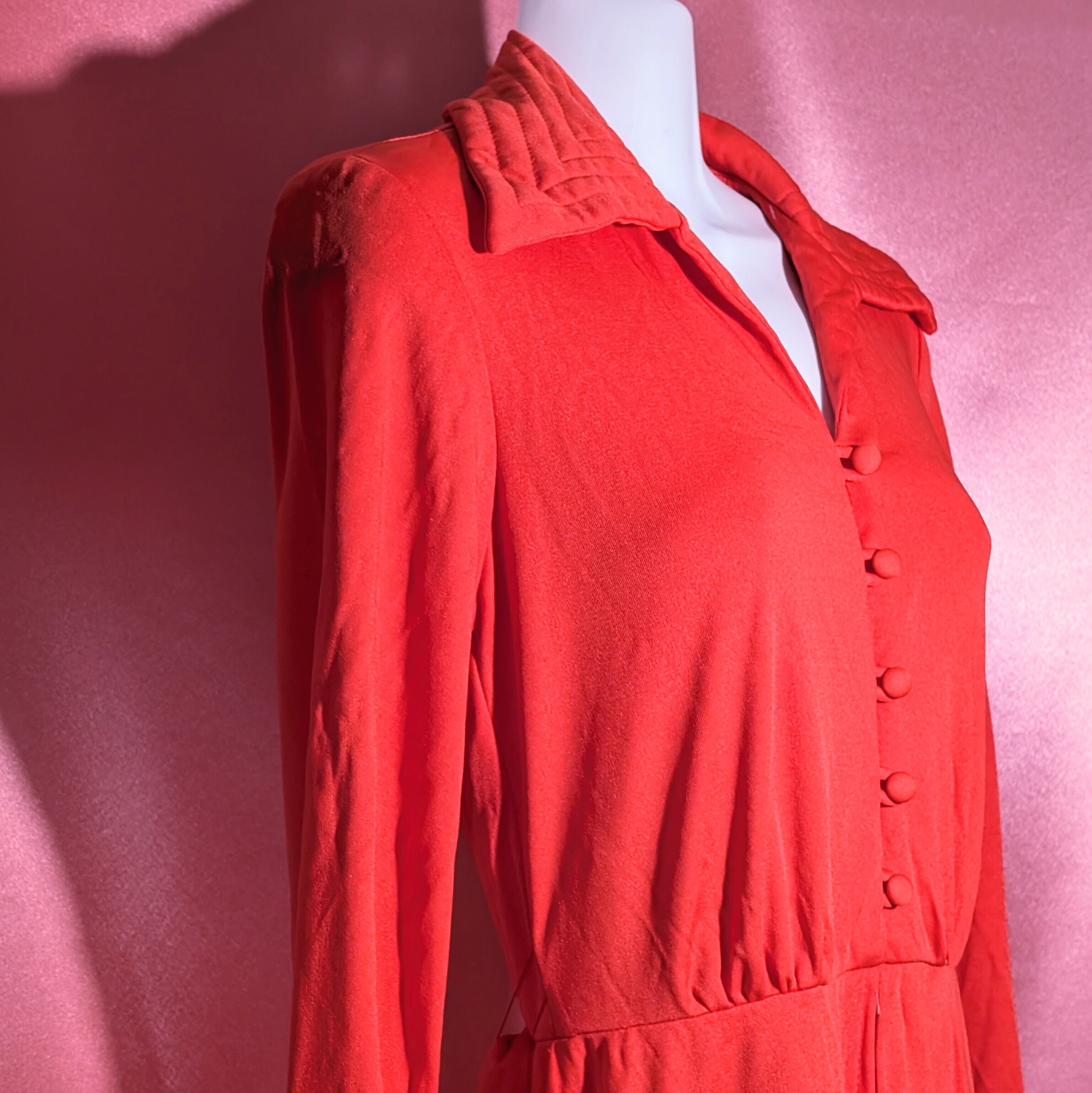 鮮やかな赤に、スーパーレトロなデザイン、流れるようなシルエットが魅力で、着るだけで特別な気分にさせてくれる一枚です。