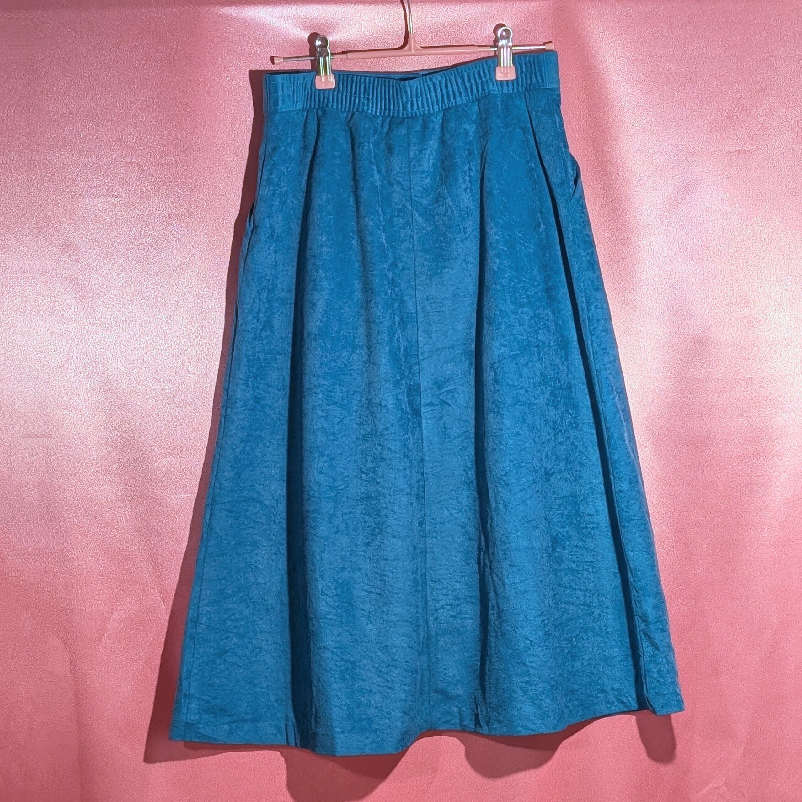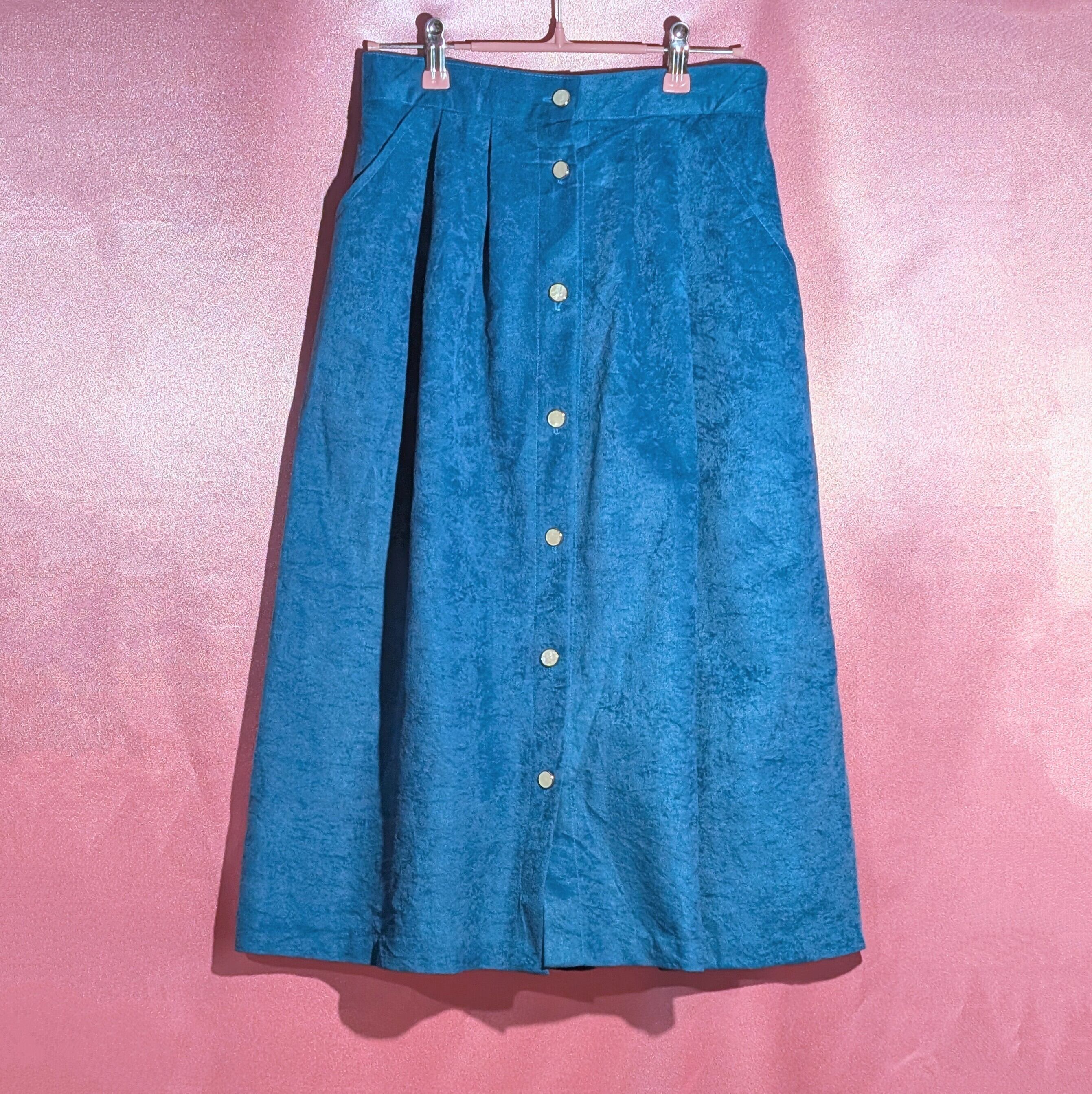 鮮やかなブルーが印象的なミモレ丈スカート。