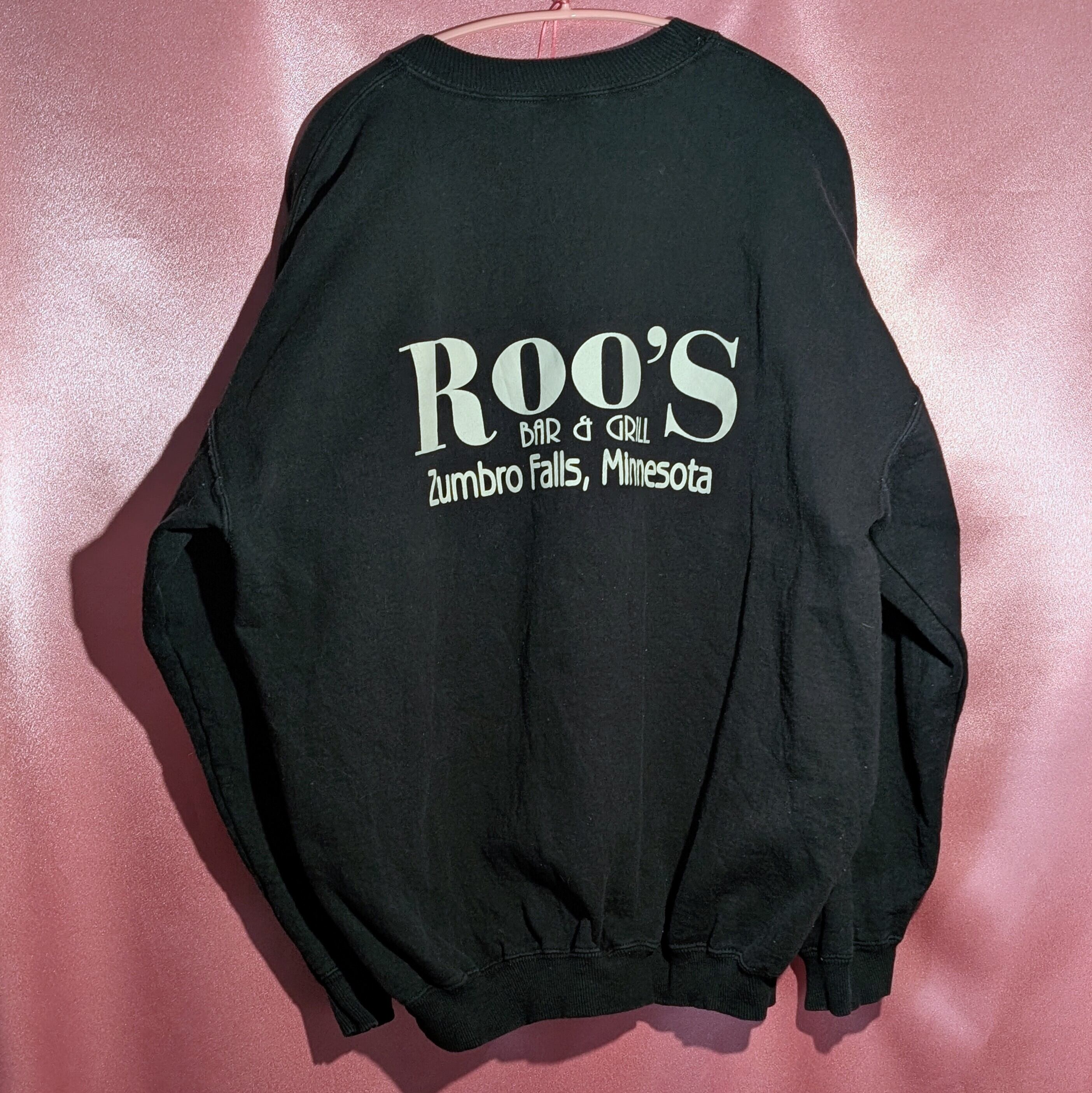 ROO'S BAR & GRILL というミネソタ州のレストランのスウェット。やはり古着って、知らないお店のアイテムとか見つけると、手に入れたくなりますよね·····