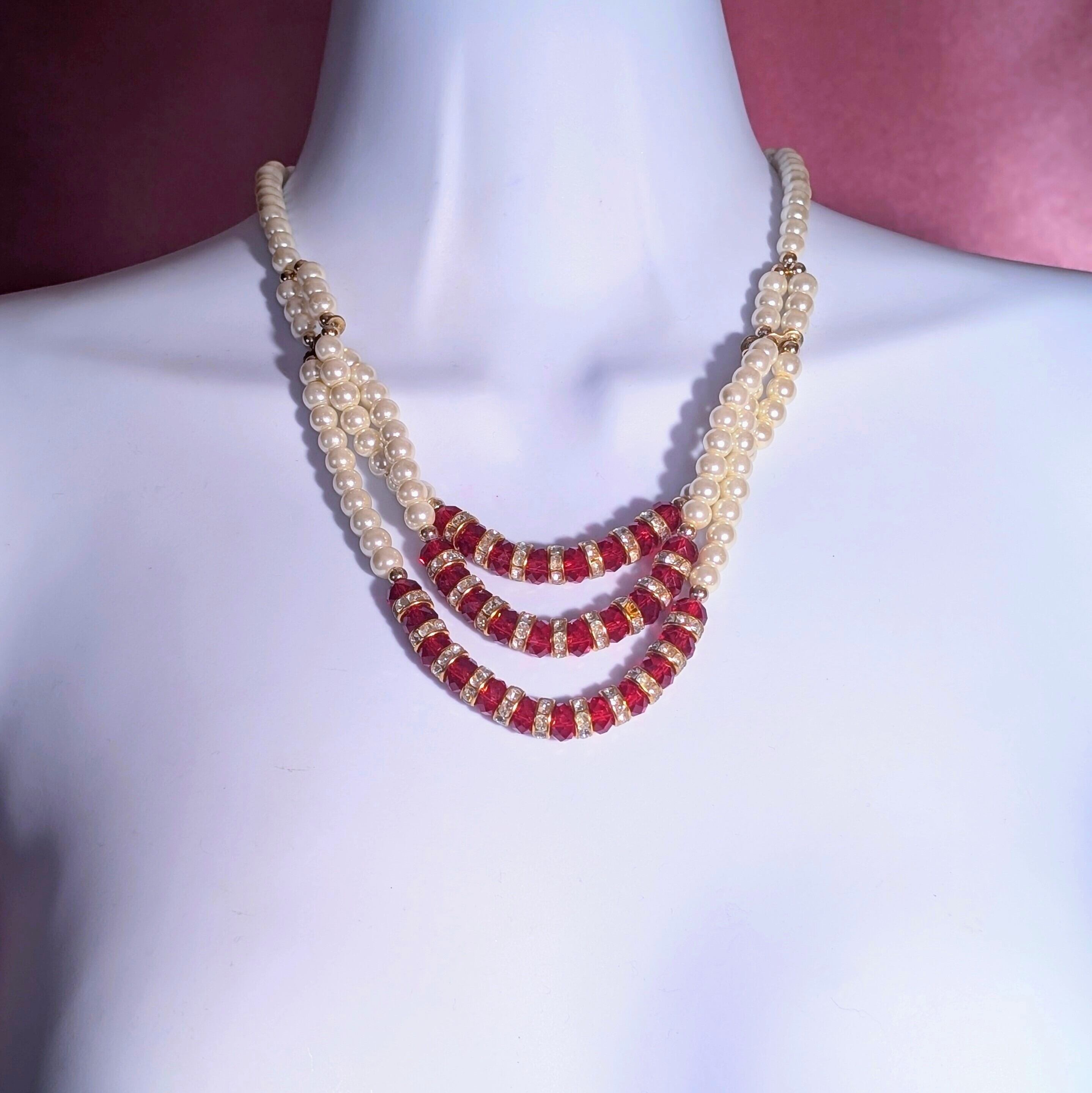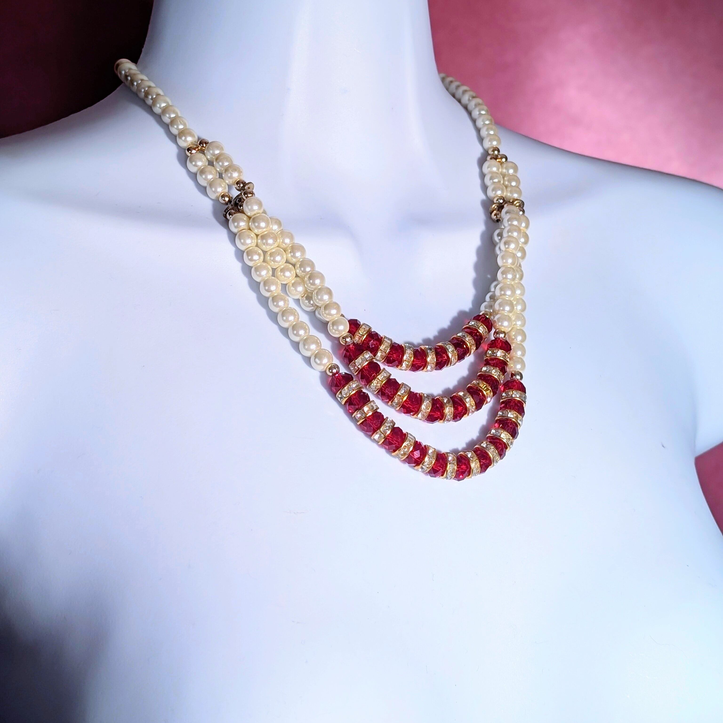 Vintage Jewelry パール×赤×クリスタル ネックレス